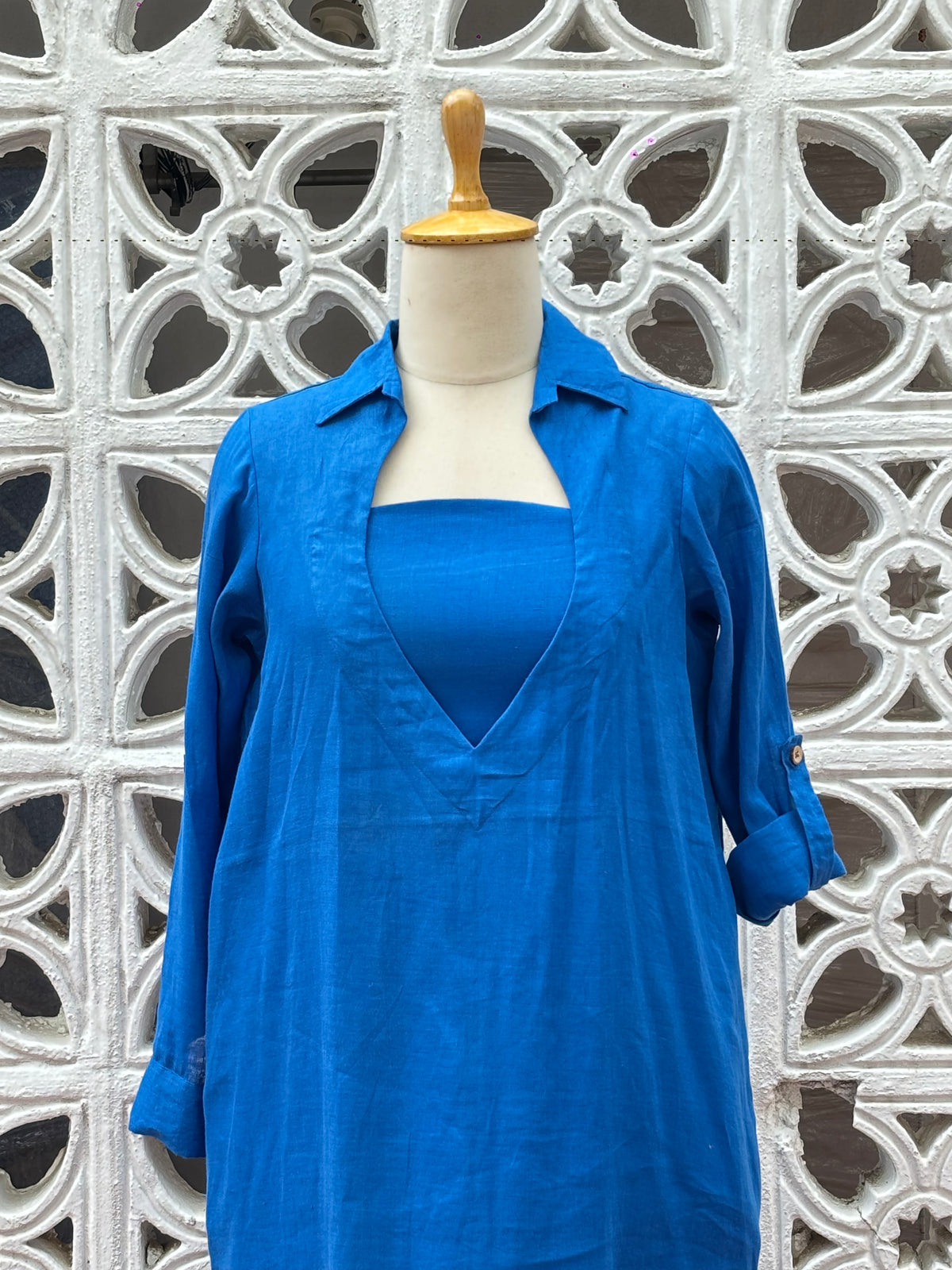 Crafted in breathable linen fabric, this outfit reflects our commitment to sustainable fashion, using natural materials that are gentle on the skin and kinder to the planet. The tunic’s fluid drape allows for relaxed movement, while the tailored bustier adds structure and balance. The cropped palazzo pants complete the look with an easy, modern silhouette that transitions seamlessly from day to evening wear.