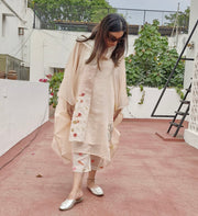 Thoughtfully detailed with hand-applied shell-embroidered patches on the scarf and pants, each element celebrates artisanal craftsmanship and slow-fashion values. The lightweight construction makes it ideal for everyday wear, travel days, and intimate, mindful celebrations.